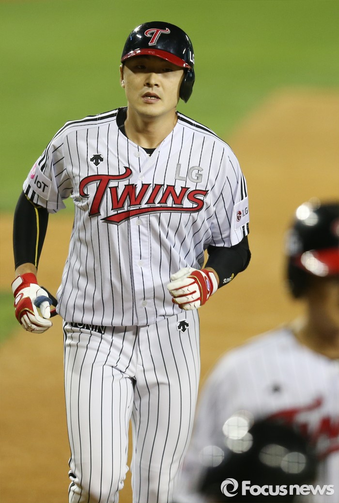 (서울=포커스뉴스) 11일 서울 잠실구장에서 열린 2016 프로야구 삼성-LG 경기 6회말 1사 1,3루에서 LG 이형종이 좌월 3점 홈런을 치고 홈인하고 있다.