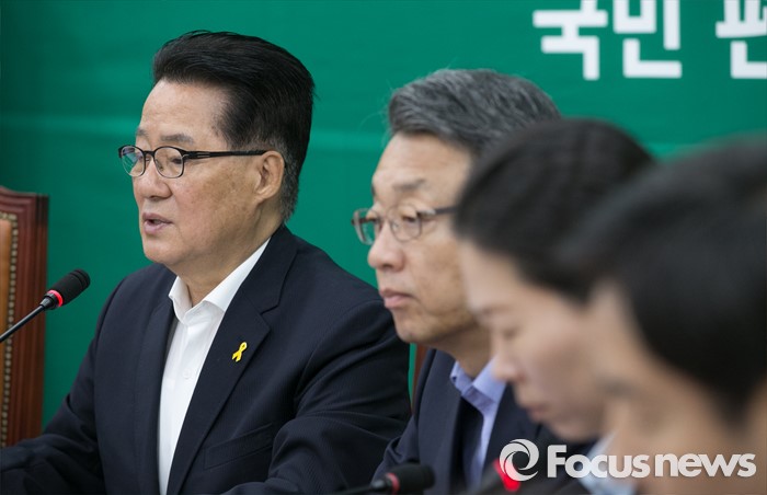 (서울=포커스뉴스) 12일 오전 서울 여의도 국회에서 열린 국민의당 원내정책조정회의에 참석한 박지원(왼쪽) 원내대표가 모두발언을 하고 있다.