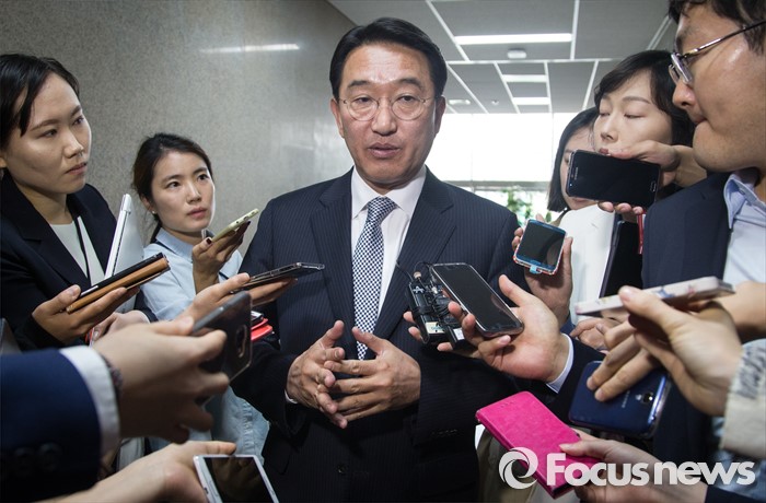 (서울=포커스뉴스) 청와대 현기환 정무수석이 12일 오전 국회를 방문해 정진석 새누리당 원내대표를 만난 후 국회를 나서며 기자들 질의에 답하고 있다.