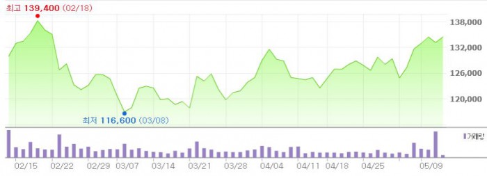 그는 "서머너즈워의 흥행이 예상보다 견조하게 지속하고 있다"며 "올해 예상 주당순이익(EPS)을 9.7% 상향 조정했다"고 설명했다.최근 3개월간 컴투스 주가 추이 <그래픽출처=네이버>