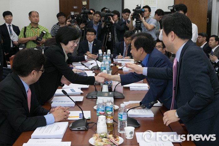 | △ 인사하는 환노위 법안소위 여야 의원들 |