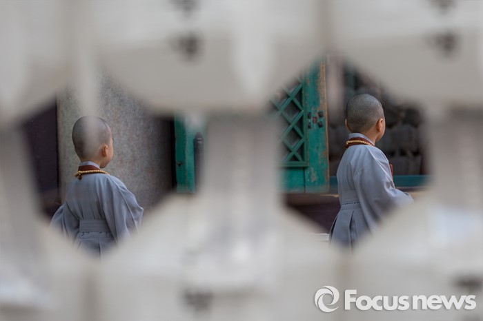 (서울=포커스뉴스) 석가탄신일을 이틀 앞둔 12일 오전 서울 종로구 조계사에서 동자승들이 경내를 둘러보고 있다.