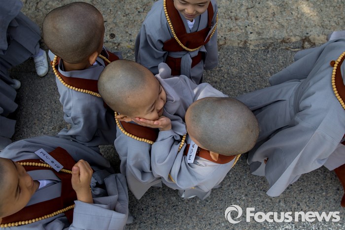 (서울=포커스뉴스) 석가탄신일을 이틀 앞둔 12일 오전 서울 종로구 조계사에서 동자승들이 경내를 둘러보고 있다.