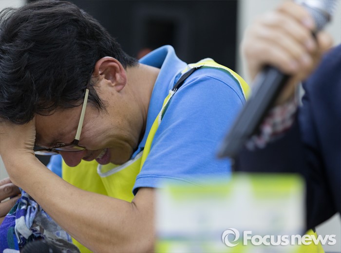 (서울=포커스뉴스) 12일 오전 서울 중구 환경재단 레이첼카슨홀에서 가습기 살균제 피해자 가족인 안성우씨가 세퓨에 원료를 공급한 덴마크 케톡스(KeTox)사 항의 방문 결과와 현지 조사기록을 발표 중 눈물을 흘리고 있다.