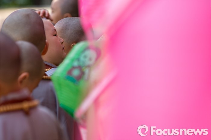 (서울=포커스뉴스) 석가탄신일을 이틀 앞둔 12일 오전 서울 종로구 조계사에서 동자승들이 경내를 둘러보고 있다.