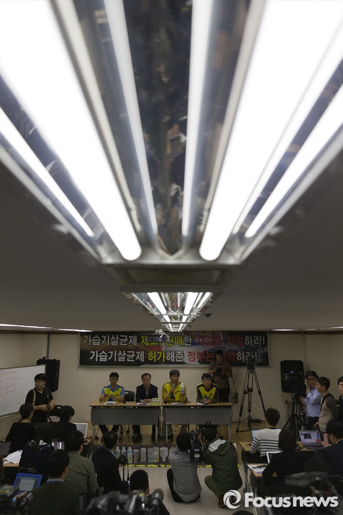 (서울=포커스뉴스) 12일 오전 서울 중구 환경재단 레이첼카슨홀에서 최예용 환경보건시민센터 소장이 가습기 살균제 제조사 세퓨에 원료를 공급한 덴마크 케톡스(KeTox)사 항의 방문 결과와 현지 조사기록을 발표하고 있다.