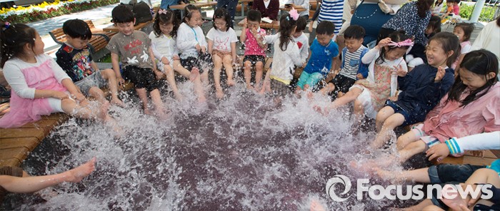 (대전=포커스뉴스) 유성온천문화축제를 하루 앞둔 12일 오전 대전 유성구 유성온천문화공원 족욕장을 찾은 어린이들이 족욕을 즐기고 있다. 유성온천문화축제는 13일부터 15일까지 열리며 국내 최초로 한방족욕카페를 개장해 태양인과 태음인, 소양인, 소음인 사상체질별 맞춤 족욕장을 운영한다.