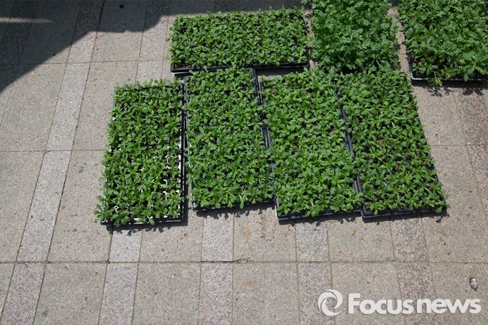 (서울=포커스뉴스) 12일 오후 서울시청 광장에서 열린 채소 모종 나눔행사에서 각종 채소 모종이 바닥에 놓여져 있다.