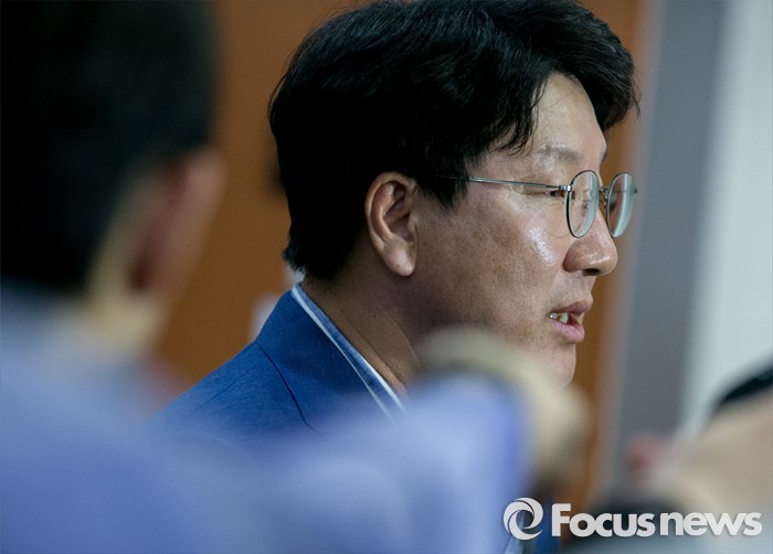 (서울=포커스뉴스) 권성동 국회 환경노동위원회 여당 간사가 12일 오후 서울 여의도 국회 정론관에서 가습기 살균제 사건 관련 기자회견을 마친 뒤 취재진 질문에 답하고 있다.