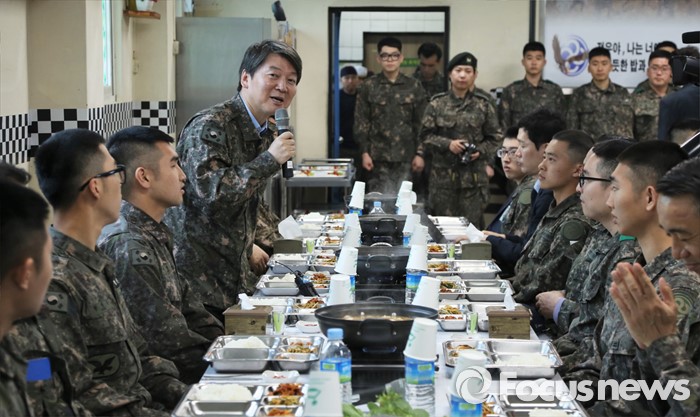 (연천=포커스뉴스) 안철수 국민의당 상임공동대표가 12일 오후 경기도 연천 전방부대를 방문해 장병들과의 오찬에 앞서 인사말을 하고 있다.