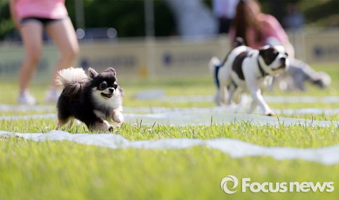 (서울=포커스뉴스) 12일 오후 서울 광진구 건국대학교 잔디광장에서 수의과대학 주최로 열린 '반려견과 함께하는 축제, 반함'에서 반려견들이 주인을 향해 달리고 있다.