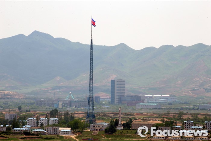 (파주=포커스뉴스) 36년 만에 열린 북한의 제7차 노동당 대회에서 김정은 국방위원회 제1위원장이 노동당 위원장으로 취임했다. 이번 당대회는 김정은의 독재를 더욱 공고히 하기 위한 우상화 노선의 연장선이라는 평가가 나오고 있다. 사진은 12일 오후 경기도 파주시 공동경비구역(JSA) 오울렛 초소에서 바라본 북한 기정동마을의 모습.