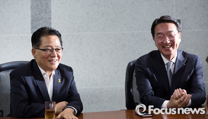 | △ 환하게 웃는 박지원 원내대표-현기환 정무수석 |