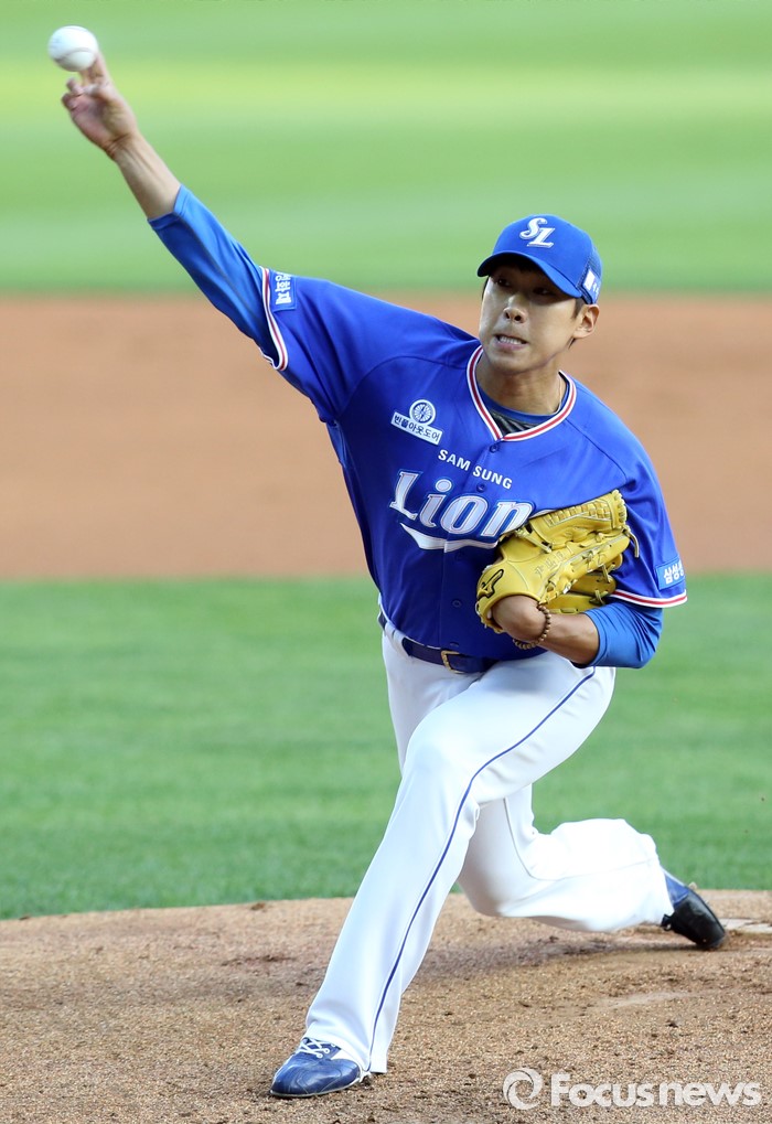 (서울=포커스뉴스) 12일 서울 잠실구장에서 열린 2016 프로야구 삼성-LG 경기에서 1회말 삼성 선발투수 윤성환이 투구하고 있다.