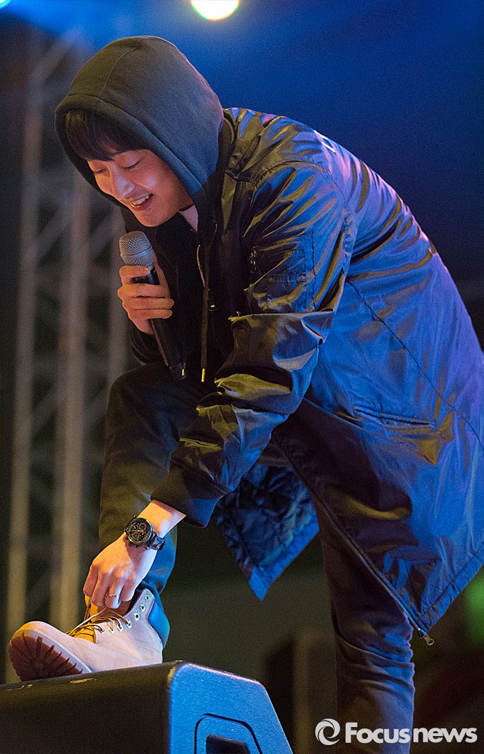 (서울=포커스뉴스) 12일 오후 서울 광진구 건국대학교 대운동장에서 열린 '2016 건국대학교 대동제'에서 그룹 긱스 멤버 루이가 무대를 선보이고 있다.