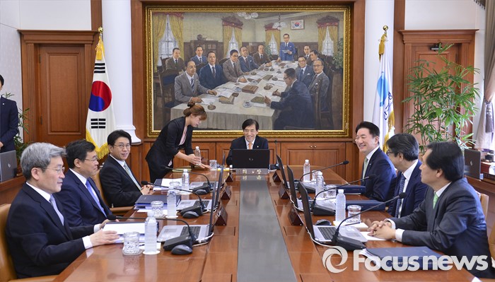 (서울=포커스뉴스) 이주열 한국은행 총재가 13일 오전 서울 중구 남대문로 한국은행에서 열린 금융통화위원회에 참석해 회의 시작을 기다리고 있다.