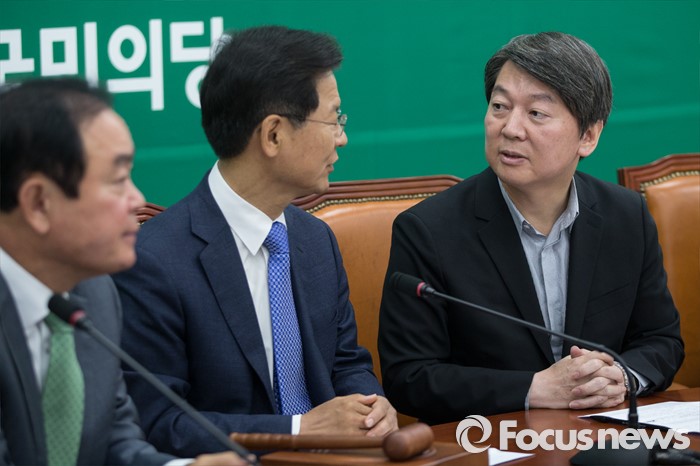 | △ 대화하는 안 대표와 천 대표 |