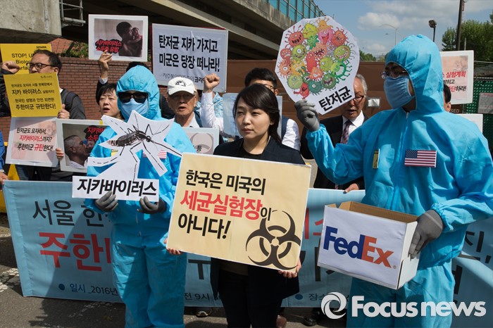 정연옥 정의당 용산지역위원회 위원장은 "지난해에도 주한미군은 우리 정부에 알리지 않고 탄저균을 반입해 논란이 된 게 고작 1년 전인데 이번엔 지카 바이러스 취급 의혹이 일고 있다"며 "이는 미국 정부가 우리를 만만하게 보고 있다는 방증"이라고 말했다.