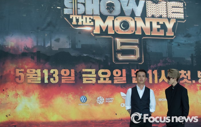 (서울=포커스뉴스) 13일 오전 서울 영등포구 타임스퀘어 아모리스홀에서 열린 Mnet '쇼미더머니5' 제작발표회에 참석한 작곡가 쿠시와(왼쪽) 가수 자이언티가 포토타임을 갖고 있다.
