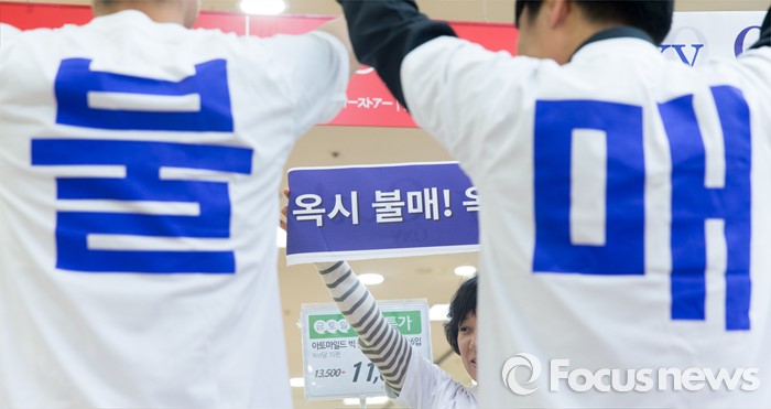 (서울=포커스뉴스) 13일 오전 서울 중구 롯데마트 서울역점에서 환경운동연합과 가습기 살균제 피해자 가족모임이 '옥시 제품 즉각 판매 중단'을 촉구하고 있다.