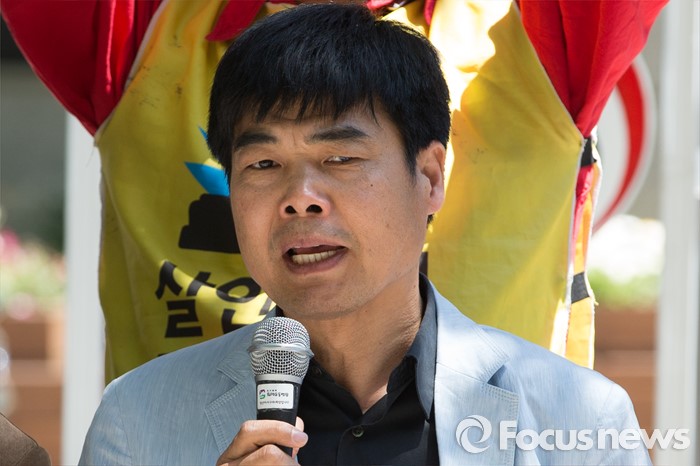 (서울=포커스뉴스) 13일 오후 서울 종로구 정부서울청사 후문에서 열린 '윤성규 환경부 장관 해임을 요구하는 가습기 살균제 피해자와 시민사회단체 기자회견'에서 염형철 환경운동연합 사무총장이 규탄발언을 하고 있다.