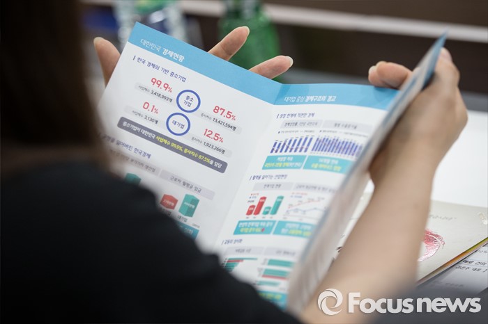 (서울=포커스뉴스) 13일 오후 서울 여의도 중소기업중앙회에서 유통분야 납품업체 간담회가 열리고 있는 가운데 한 참석자가 기업 현황에 관된 안내 책자를 보고 있다. .