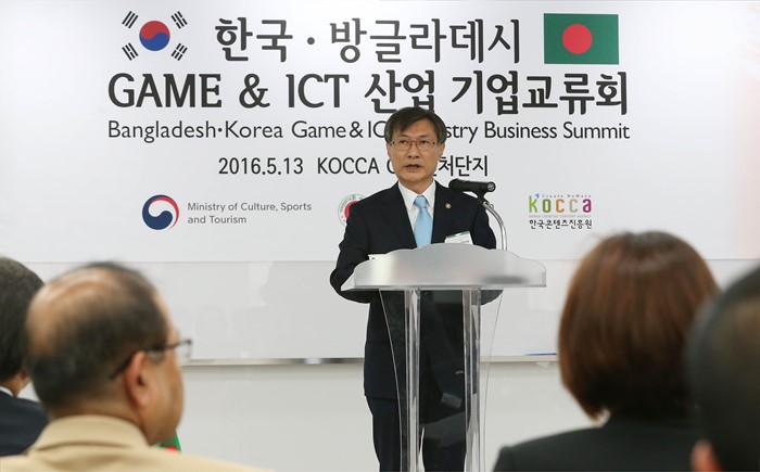 (서울=포커스뉴스) 문화체육관광부는 한국콘텐츠진흥원과 함께 13일 서울 청계천로 문화창조벤처단지 비즈센터에서 한국-방글라데시 게임 및 정보통신기술(ICT) 콘텐츠 기업 교류회를 개최했다. 정관주 문체부 제1차관이 인사말을 하고 있다. <사진제공 문화체육관광부>