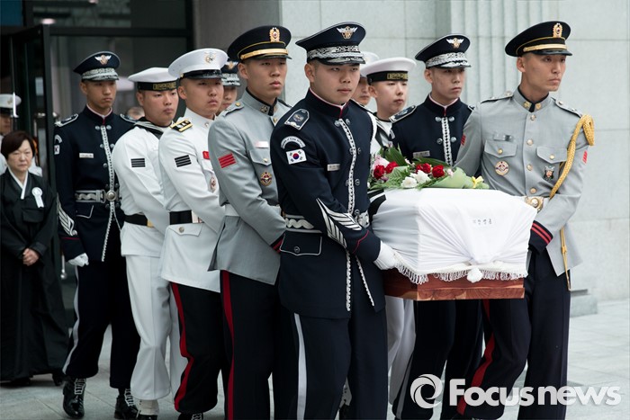 (서울=포커스뉴스) 14일 오전 서울 송파구 아산병원 장례식장에서 강영훈 전 국무총리의 발인식이 엄수되고 있다.