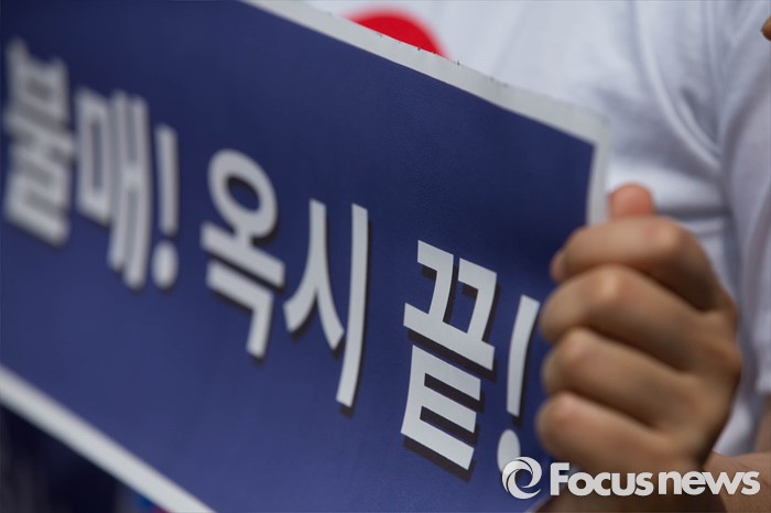 (서울=포커스뉴스) 15일 오전 서울 용산구의 한 대형마트 앞에서 환경운동연합원들이 옥시 불매를 촉구하며 기자회견을 하고 있다.