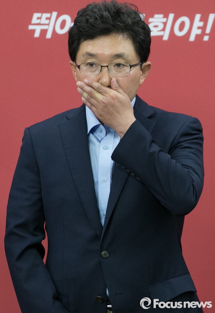 | △ 얼굴 만지는 김용태 |