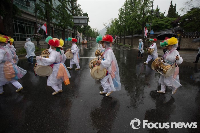 (서울=포커스뉴스) 세종대왕 탄신 619주년인 15일 오후 서울 종로구 경복궁 일대에서 세종대왕 어가행렬이 재현되고 있다.