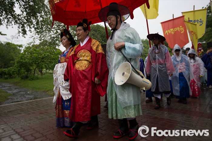 (서울=포커스뉴스) 세종대왕 탄신 619주년인 15일 오후 서울 종로구 경복궁 일대에서 세종대왕 어가행렬이 재현되고 있다.