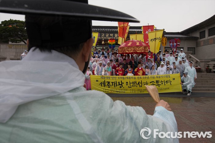 (서울=포커스뉴스) 세종대왕 탄신 619주년인 15일 오후 서울 종로구 경복궁 일대에서 세종대왕 어가행렬이 재현되고 있다.