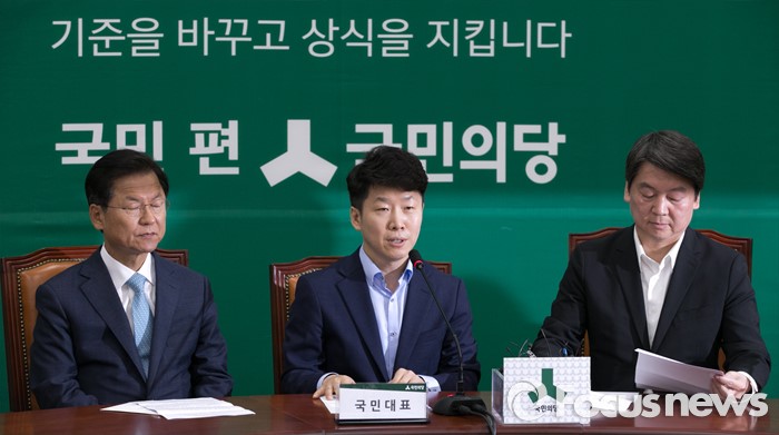 (서울=포커스뉴스) 16일 오전 서울 여의도 국회에서 열린 국민의당 최고위원회의에 국민대표로 참석한 황인국(가운데) 한국청소년재단 상임이사가 발언하고 있다.