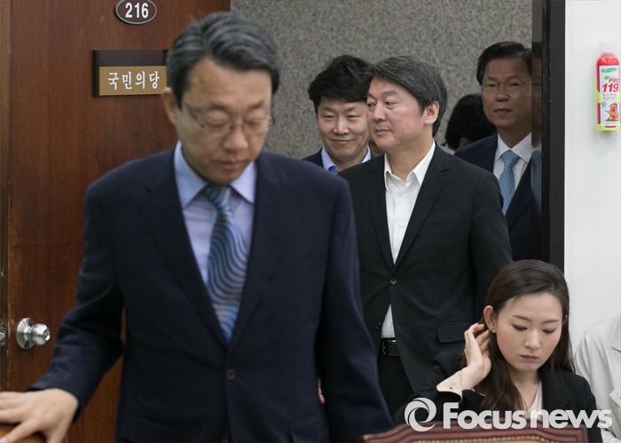 (서울=포커스뉴스) 국민의당 지도부가 16일 오전 서울 여의도 국회에서 열린 최고위원회의에 참석하고 있다. 왼쪽부터 김성식 정책위의장, 국민대표로 참석한 황인국 한국청소년재단 상임이사, 안철수 상임공동대표, 천정배 공동대표.