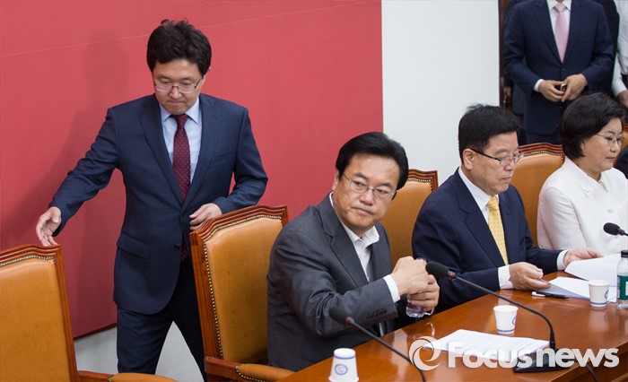 (서울=포커스뉴스) 김용태(왼쪽) 새누리당 혁신위원장이 16일 오전 서울 여의도 국회에서 열린 비상대책위원회 상견례에 참석하고 있다.