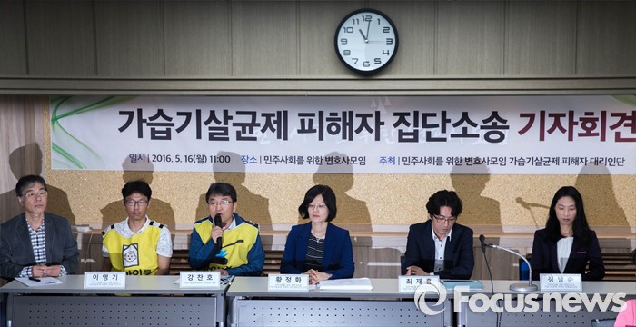 (서울=포커스뉴스) 16일 오전 서울 서초구 민변 대회의실에서 가습기살균제피해자 공동소송대리인단의 집단소송 소장 접수 기자회견이 열리고 있다.