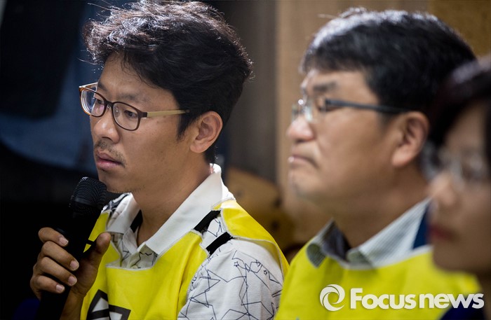 (서울=포커스뉴스) 16일 오전 서울 서초구 민변 대회의실에서 열린 가습기살균제피해자 공동소송대리인단의 집단소송 소장 접수 기자회견에서 피해자 대표가 취재진의 질문에 답변하고 있다.