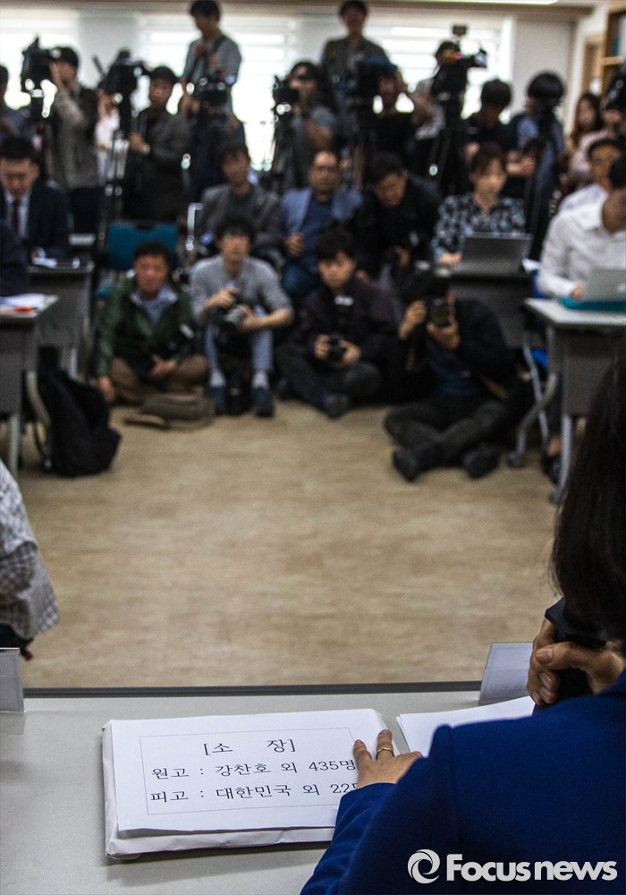 (서울=포커스뉴스) 16일 오전 서울 서초구 민변 대회의실에서 가습기살균제피해자 공동소송대리인단의 집단소송 소장 접수 기자회견이 열리고 있다.