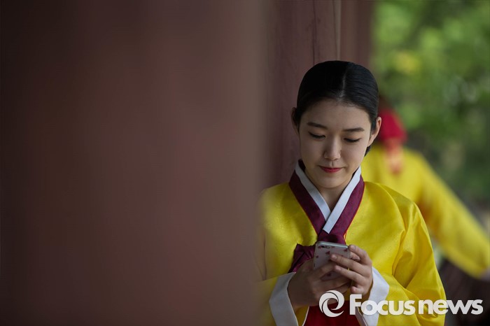 (서울=포커스뉴스) 16일 오전 서울 중구 남산골 한옥마을 천우각 광장에서 열린 제44회 성년의 날 행사에 참석한 학생들이 행사에 앞서 사진을 찍고 있다.
