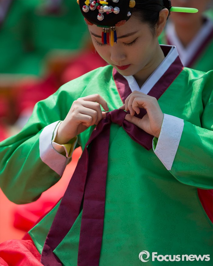 (서울=포커스뉴스) 16일 오전 서울 중구 남산골 한옥마을 천우각 광장에서 열린 제44회 성년의 날 행사에 참석한 학생들이 전통 성년례를 올리고 있다.