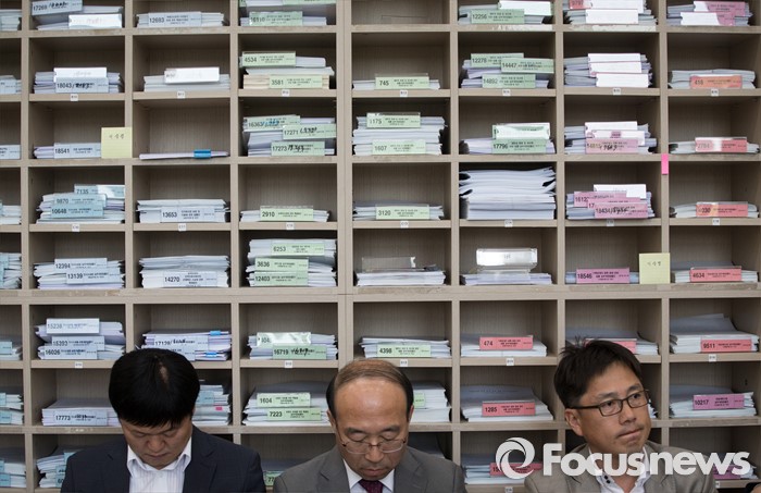 (서울=포커스뉴스) 16일 오후 서울 여의도 국회에서 열린 법제사법위원회에 법안심사1소위에 처리해야 할 법률안이 쌓여 있다.