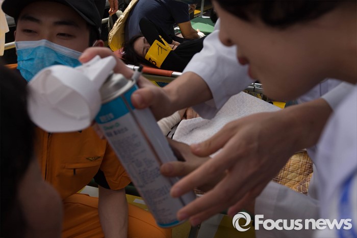 (서울=포커스뉴스) 16일 오후 서울 송파구 제2롯데월드몰에서 시민들이 '재난대응 안전한국훈련'에 참가하고 있다.