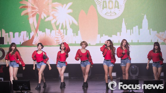 (서울=포커스뉴스) 16일 오후 서울 광진구 예스24 라이브홀에서 열린 걸그룹 AOA 미니앨범 'Good Luck' 발표 쇼케이스에 멤버들이 무대를 선보이고 있다.