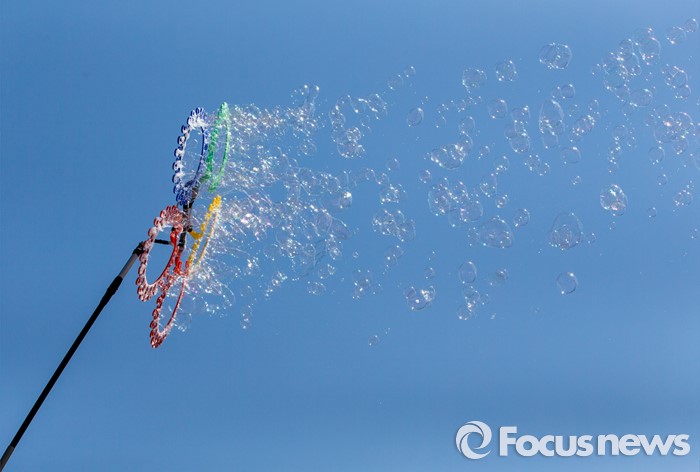 | △ 파란 하늘에 날아가는 비눗방울 |