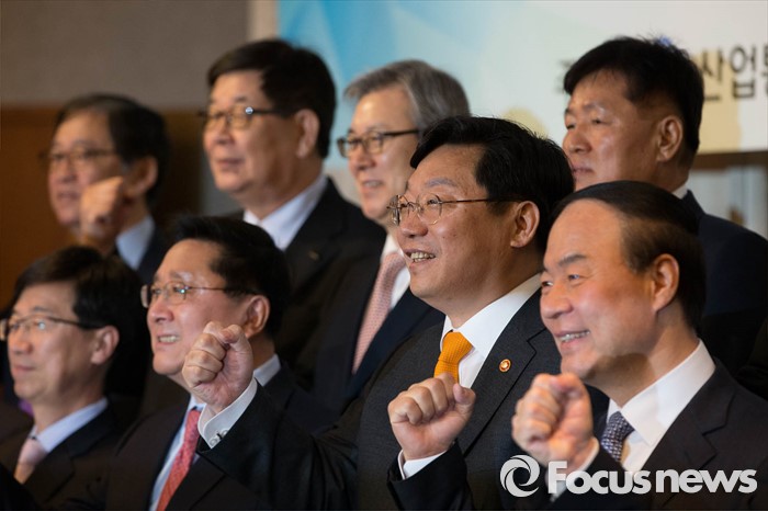 전경련 송원근 본부장은 “지속적으로 이익을 내는 기업이라면 사내유보자산이 증가하는 것이 자연스러운 현상이고, 그러한 기업이 국민경제에도 크게 기여한다”면서 “작년에 사내유보자산 환수와 기업 소득환류세제 강화 논의가 제기된 데 이어 최근에도 사내유보자산이 논란이 되고 있는데, 이러한 불필요한 논쟁을 멈추어야 한다”고 전했다.(서울=포커스뉴스) 서울 중구 롯데호텔에서 열린 '주요 투자기업 간담회'에 앞서 투자기업 사장단들과 기념촬영을 하고 있다. 2016.03.09 이승배 기자
