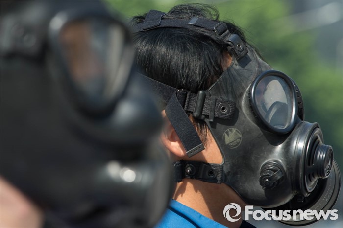 △ '갑갑한 방독면'