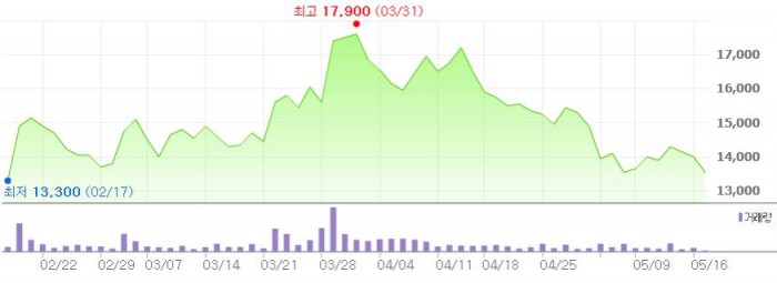 지난해 8월 신성장동력으로 진출한 드론 사업은 올해 1분기 출시한 입문용 미니드론을 시작으로 레이싱, VR, 촬영용 드론 등 다양한 라인업을 선보일 계획이다.최근 3개월간 이에스브이 주가 추이 <그래픽출처=네이버>