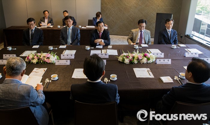 (서울=포커스뉴스) 17일 오후 서울 중구 플라자호텔에서 열린 경제사회발전 노사정위원회 역대 상임위원 간담회에 참석한 김대환(뒷줄 가운데) 위원장이 인사말을 하고 있다.