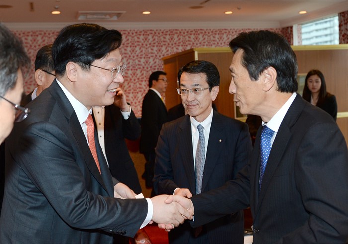 (서울=포커스뉴스) 주형환 산업통상자원부 장관이 17일 일본 동경 오쿠라호텔 메이페어룸에서 도레이BSF, 스미토모화학, 쿠라레, 테이진, 데산트 등 對韓투자 의향 보유기업 16개사 관계자와 김용국 Invest KOREA 대표 등 산업부 담당자가 참석한 가운데 투자 라운드 테이블 행사를 갖고 투자유치 프로젝트 발굴 다각화에 관해 의견을 나누고 있다. <사진제공=산업통상자원부>